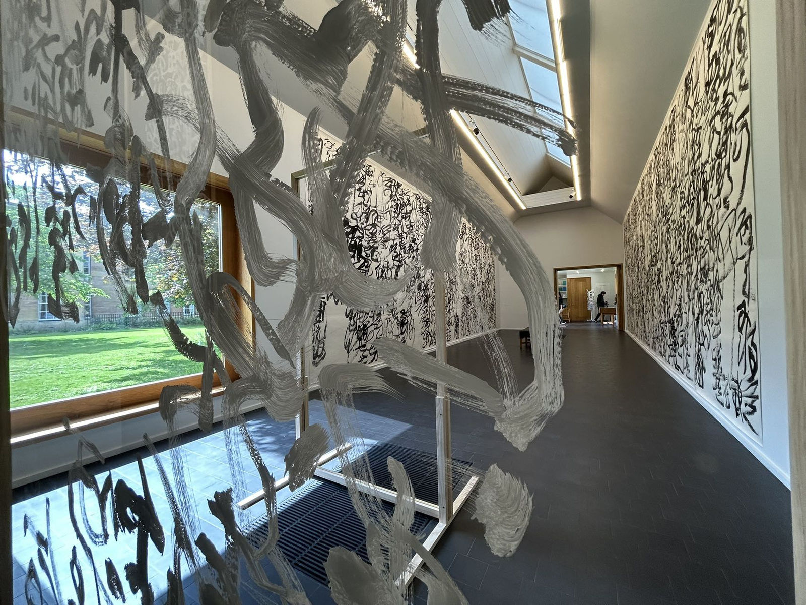 For his new, site-specific exhibition at The Heong Gallery, pre-eminent contemporary calligrapher, Wang Dongling, draws upon the writings of legendary Daoist master, Laozi, and Cambridge theoretical physicist and cosmologist, Prof. Stephen Hawking. Rendered in his characteristic 'luan shu' or 'chaos script', texts detach from meaning and dissolve into mark and trace on a monumental scale.