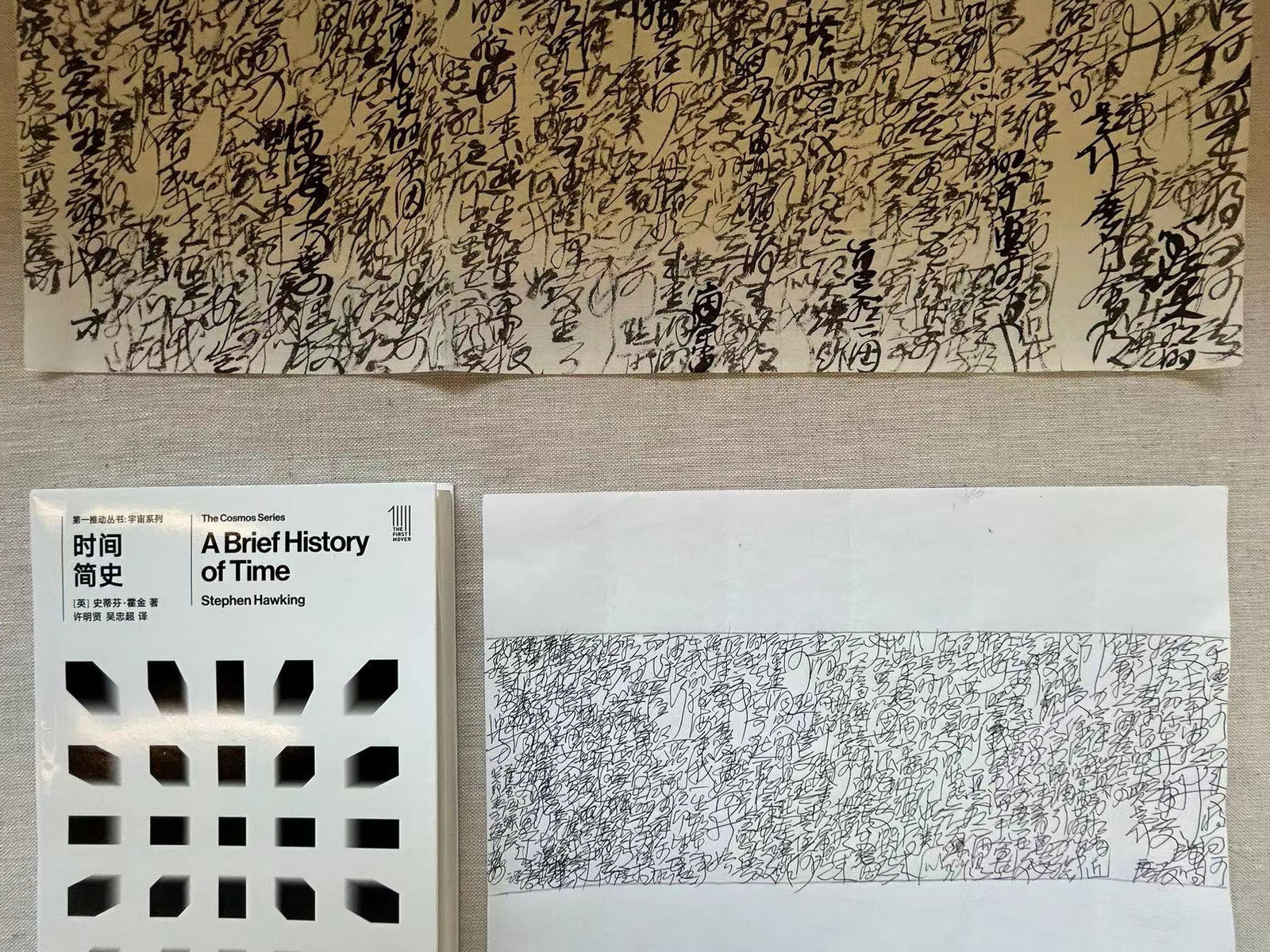 I am delighted to introduce you to the work of calligrapher Wang Dongling, who has interpreted some of my father's most iconic statements as luanshu - chaos script - a form of calligraphy in which legible script flows at times into pure abstraction. Pairing my father's words with the writings of Laozi is an inspired choice. Both the Daoist master and the great modern cosmologist were deeply engaged with the nature of reality, the importance of spontaneaity and a sense of mischievious fun which emboldened them to reject any kind of authoritarianism. And both reached far beyond the boundaries of their terrestrial existences to commune with the immense expanses of the universe, whether through the Great Dao or by traveling back in time to the Big Bang itself. In choosing my father's words to reimagine in this way, Wang Dongling has thoughtfully illustrated a beautiful connection between these two historic figures.